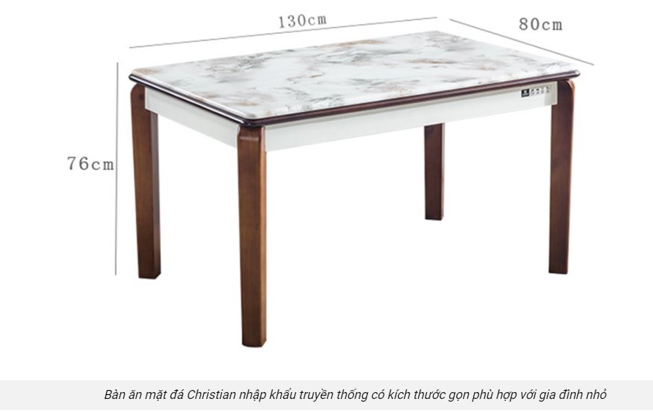 - Mẫu bàn ăn mặt đá Christian nhập khẩu này chân bàn 4 góc trụ , tạo sự chắc chắn cho kết cấu cũng như thẩm mỹ của sản phẩm .